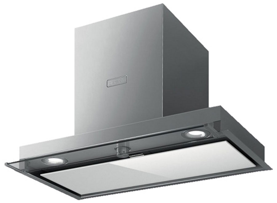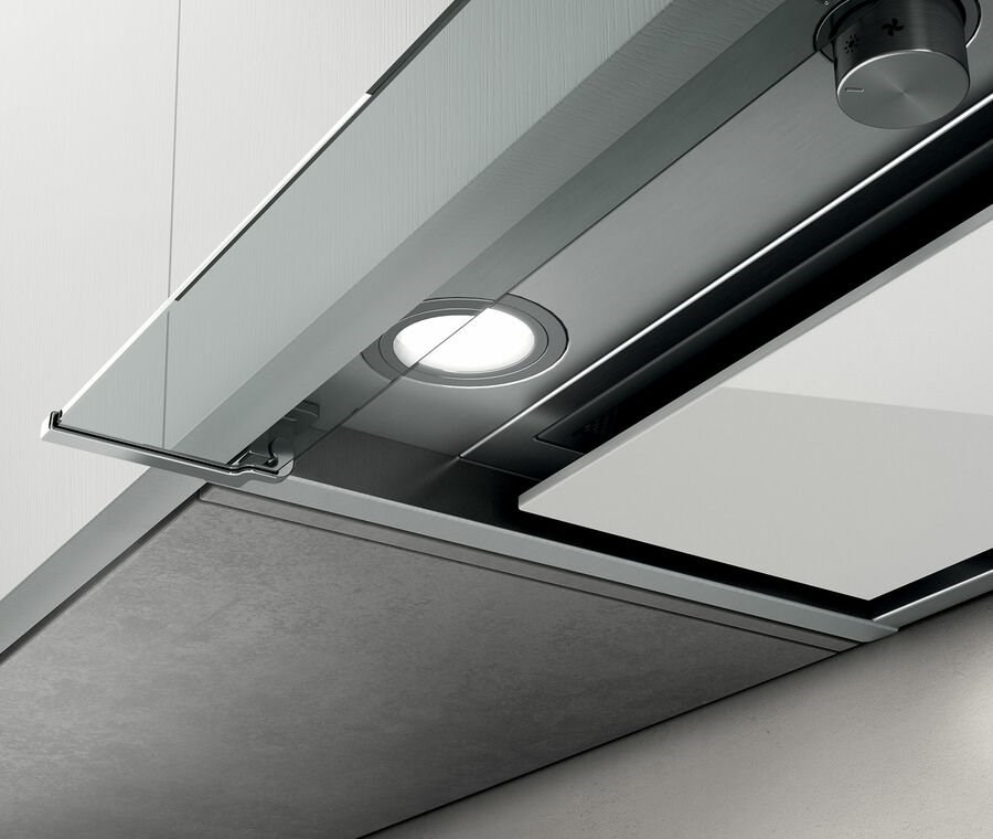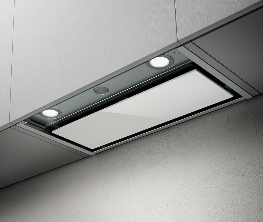 Описаниевытяжка встраиваемая в подвесной шкаф, 90 см, 1000 м3/ч, нержавеющая сталь/белое стекло