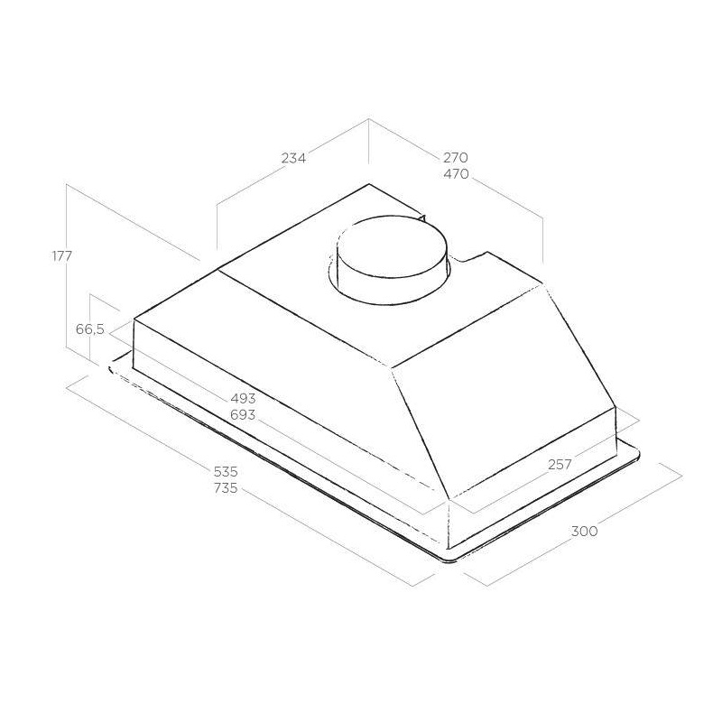 Описаниевытяжка встраиваемая в подвесной шкаф, 52 см, 700 м3/ч, нержавеющая сталь