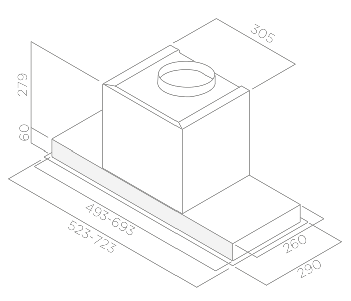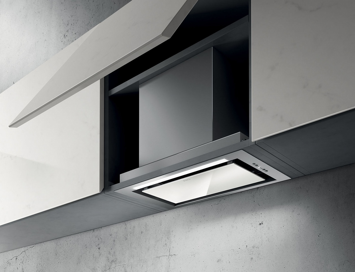 Описаниевытяжка встраиваемая в подвесной шкаф, 60 см, 1300 м3/ч, белое стекло+нержавеющая сталь