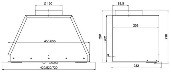 Описаниевытяжка встраиваемая в подвесной шкаф, 42 см, 430 м3/ч, хром