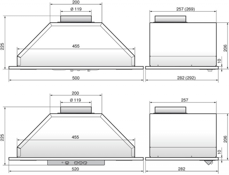 Описаниевытяжка встраиваемая в подвесной шкаф, 52 см, 400 м3/ч, нержавеющая сталь