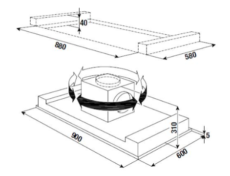 Описаниевытяжка встраиваемая в потолок, 90 см, 808 м3/ч, белое стекло