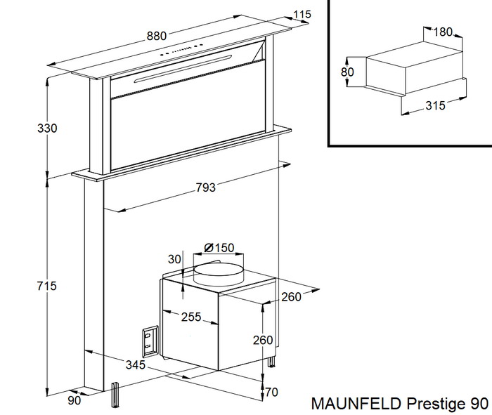 Maunfeld Prestige 90 Inox Вытяжка в столешницу
