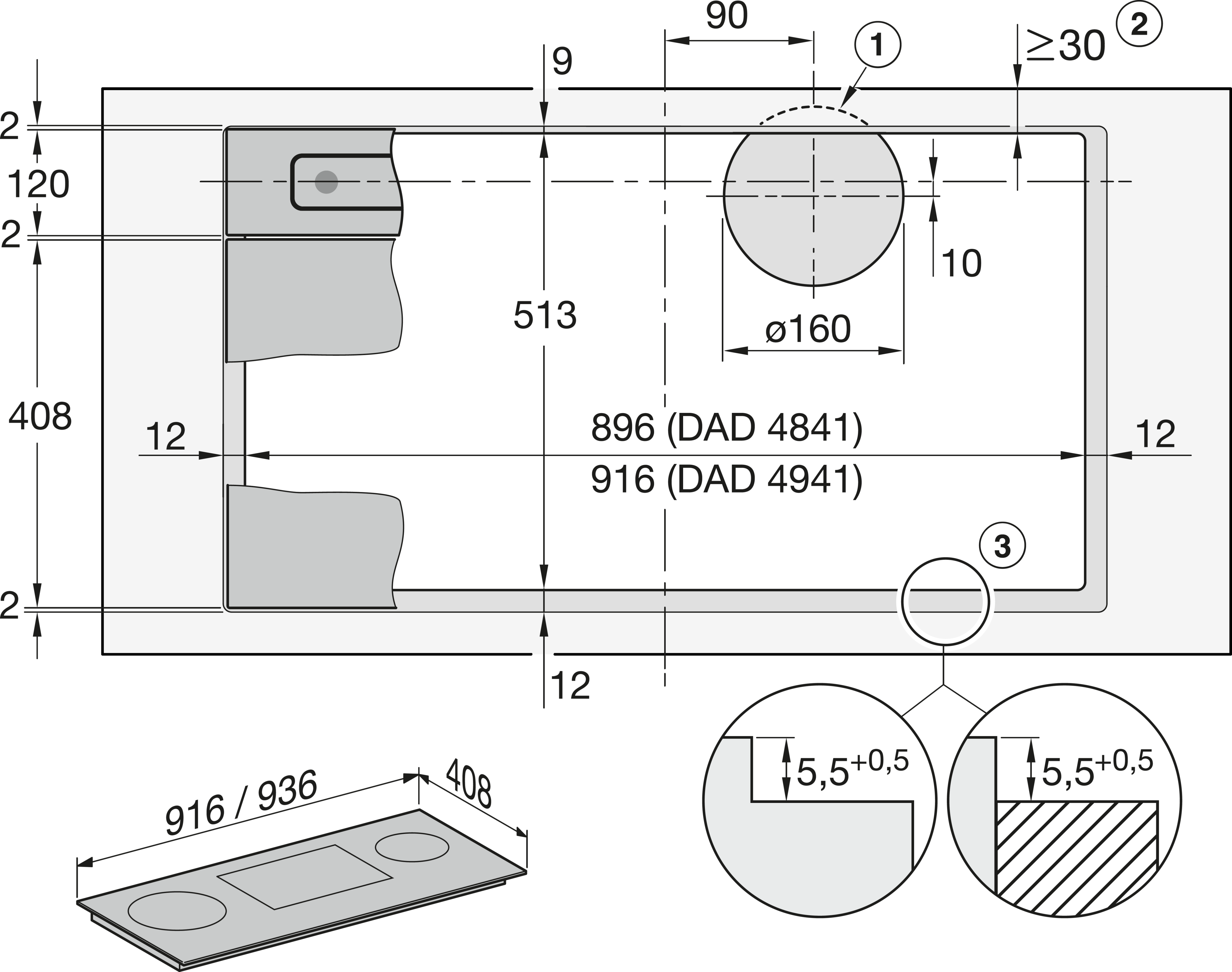 Описаниевытяжка в столешницу, 94 см, черный