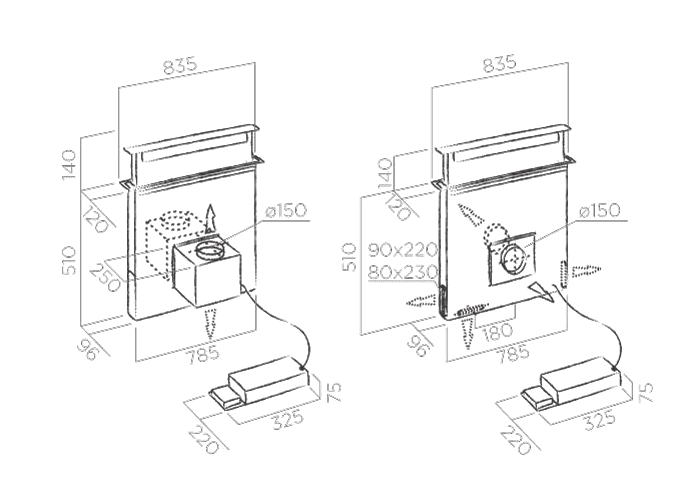 Описаниевытяжка встраиваемая в столешницу, 90 см, 1200 м3/ч, черный+черное стекло