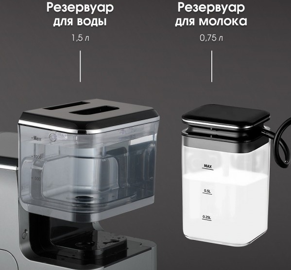 Описаниекофемашина отдельностоящая, 19х41х31,5 см, серый металлик