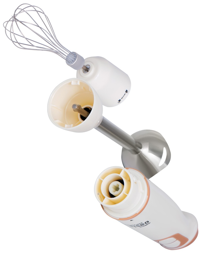 Описаниеблендер погружной, 850 Вт, 2 скорости, белый