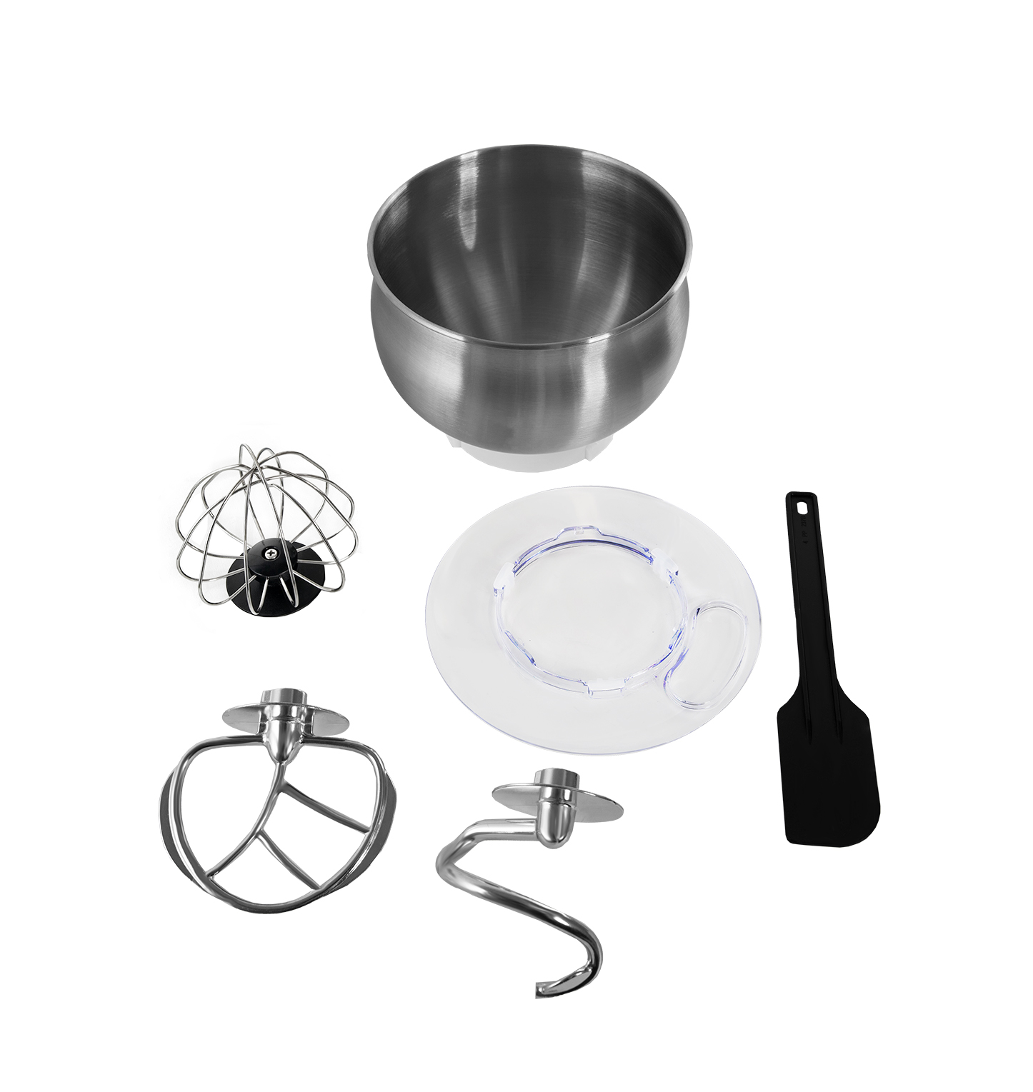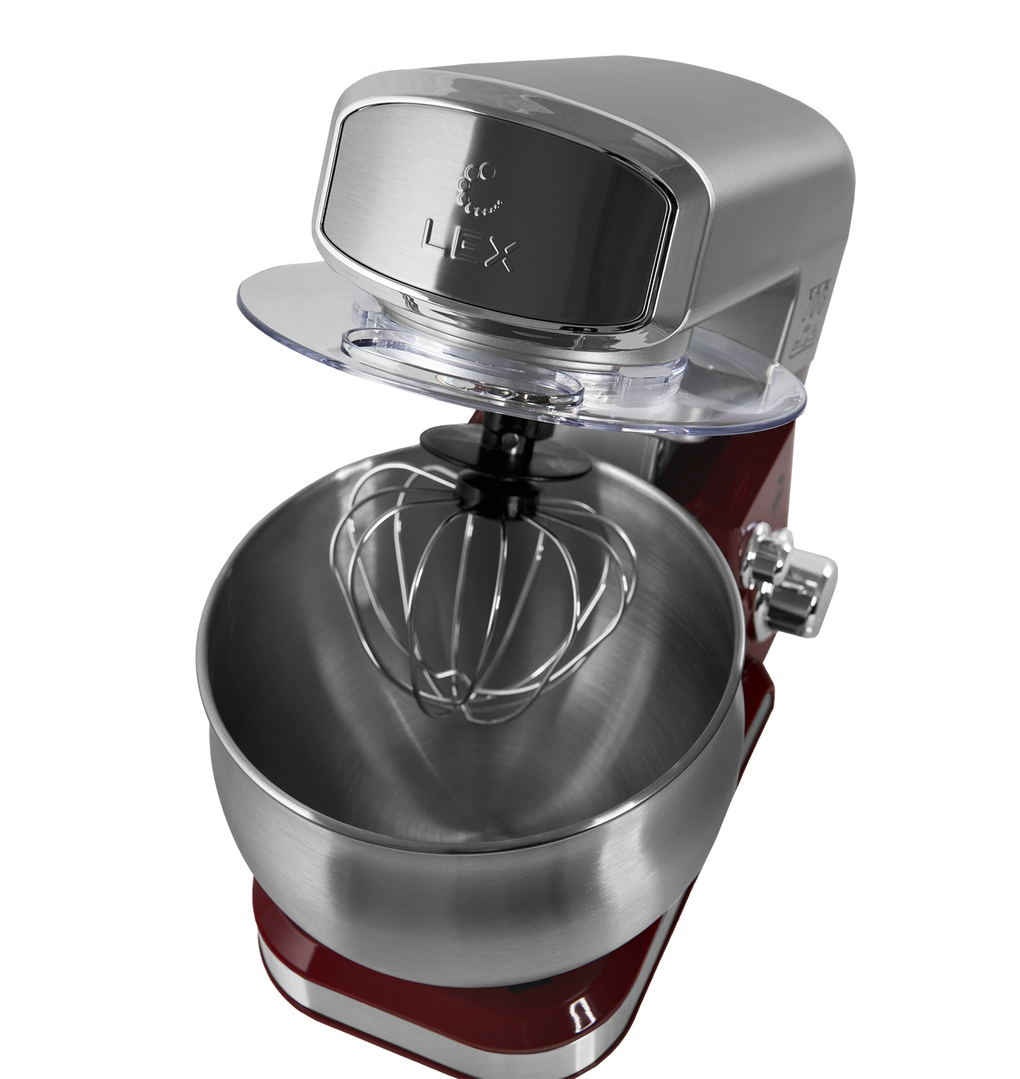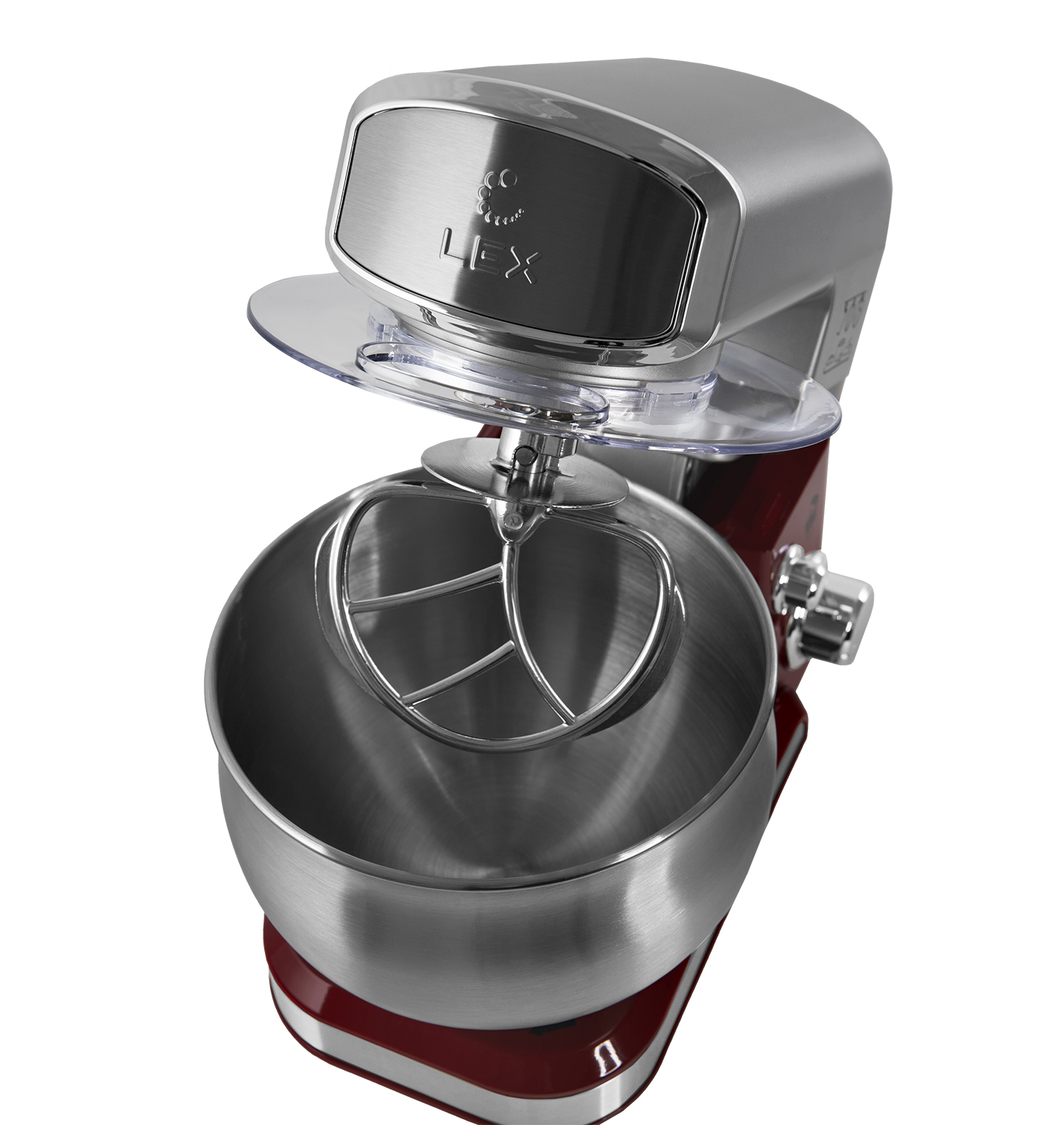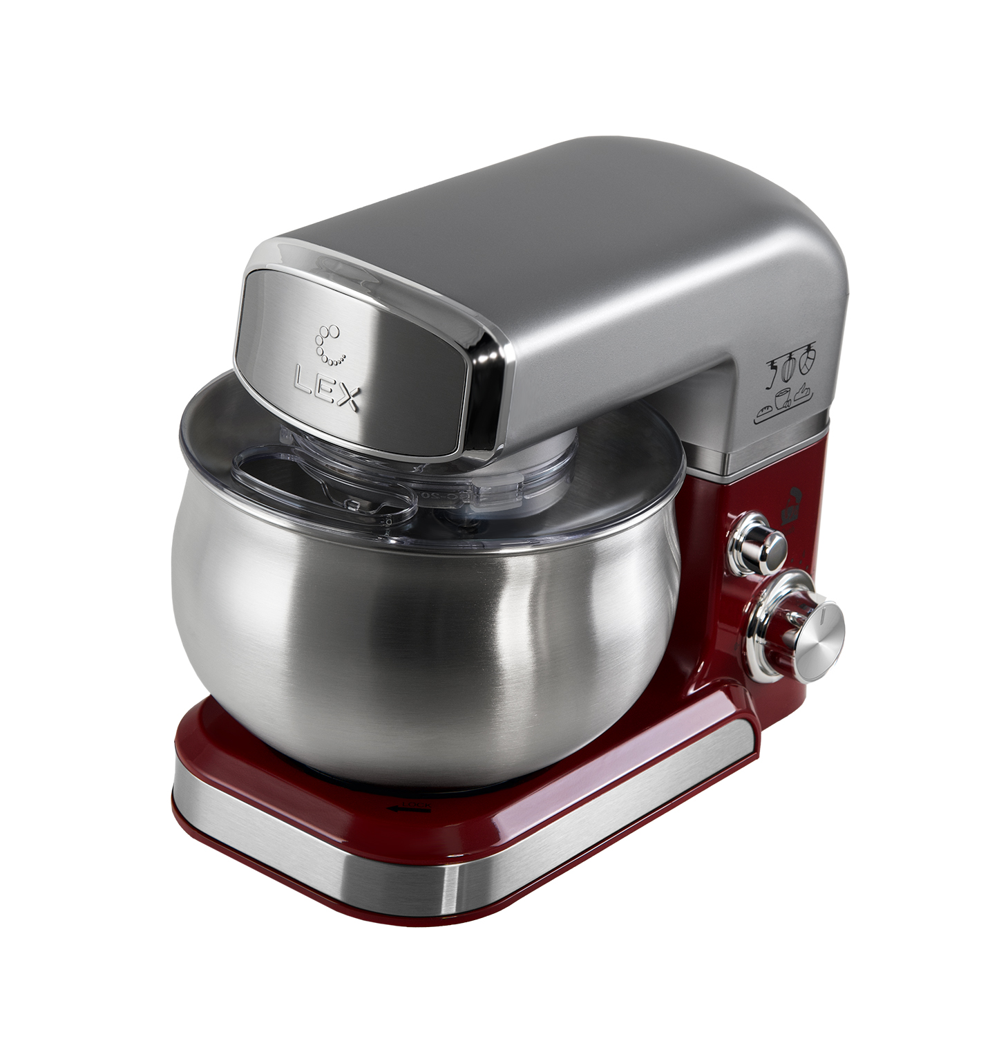 Описаниемиксер планетарный, 1000 Вт, 36х23х29 см, серебристый+ бордовый