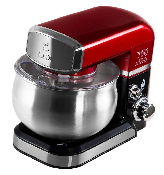 Описаниемиксер планетарный, 1000 Вт, 36х23х29 см, красный + черный