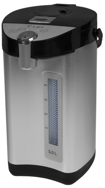 Описаниетермопот, 5 л, 900 Вт, серый с черным
