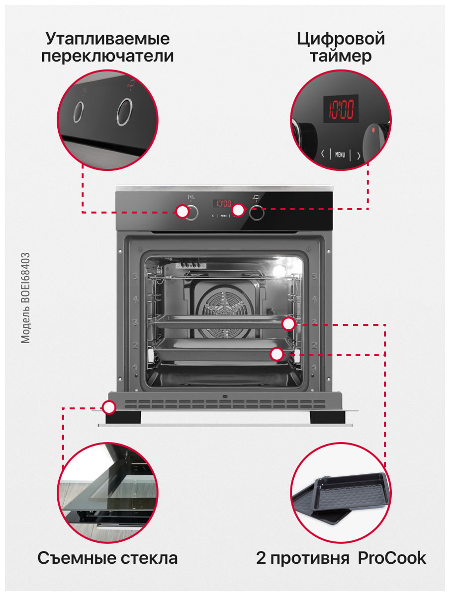 Описаниешкаф духовой электрический независимый, 60 см, нержавеющая сталь