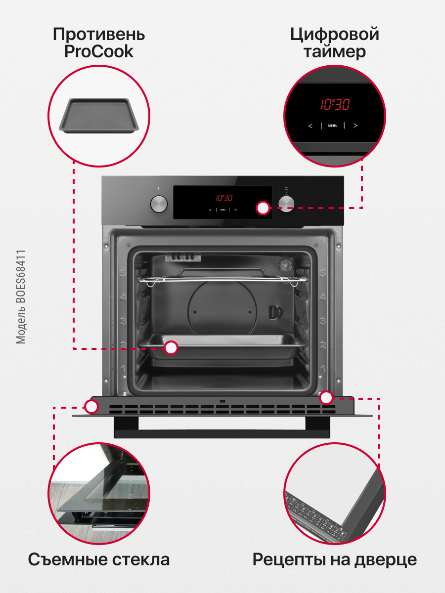 Описаниешкаф духовой электрический независимый, 60 см, черный