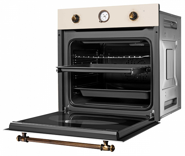 Описаниешкаф духовой электрический независимый, 60 см, слоновая кость, фурнитура - бронза