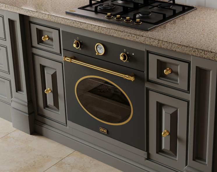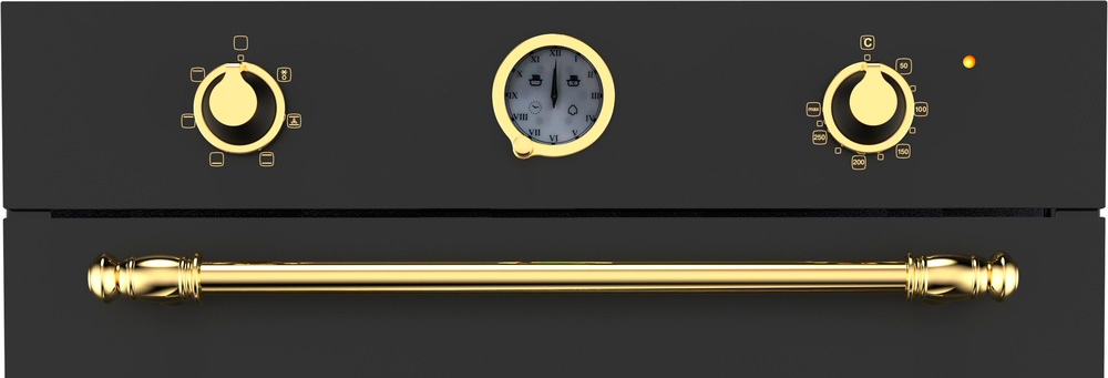Описаниешкаф духовой электрический независимый, 60 см, черный, фурнитура - золото