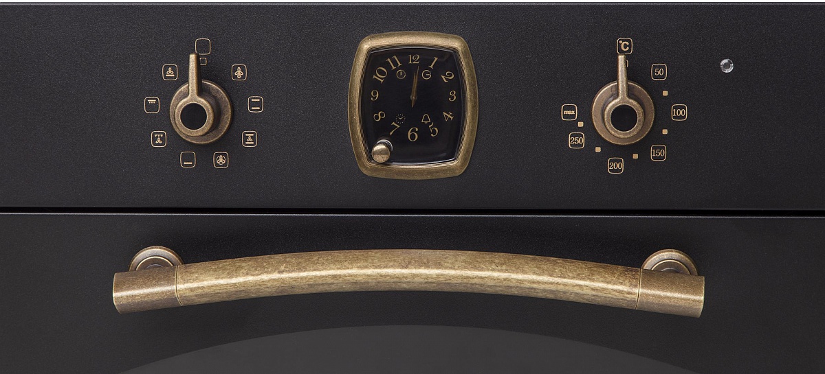 Описаниешкаф духовой электрический независимый, 60 см, черный, фурнитура - бронза