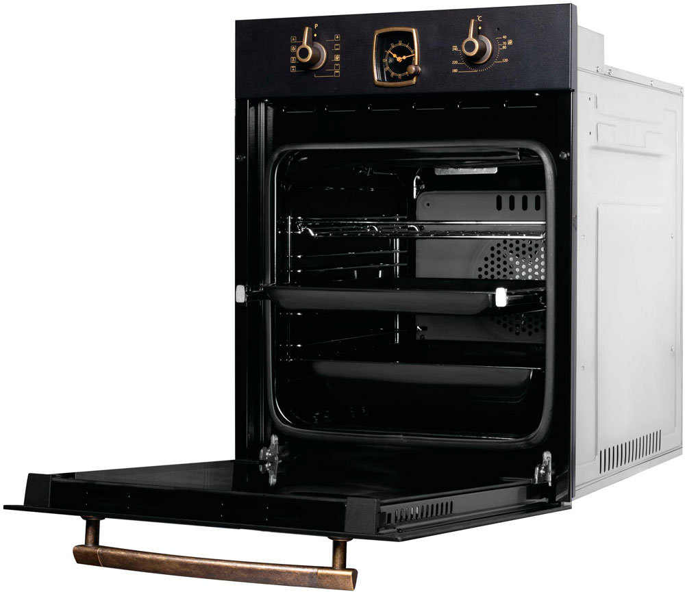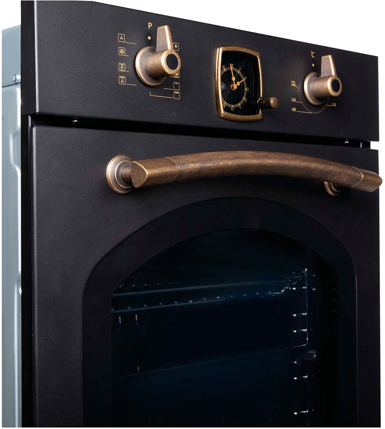 Описаниешкаф духовой электрический независимый, 45 см, черный, фурнитура - бронза