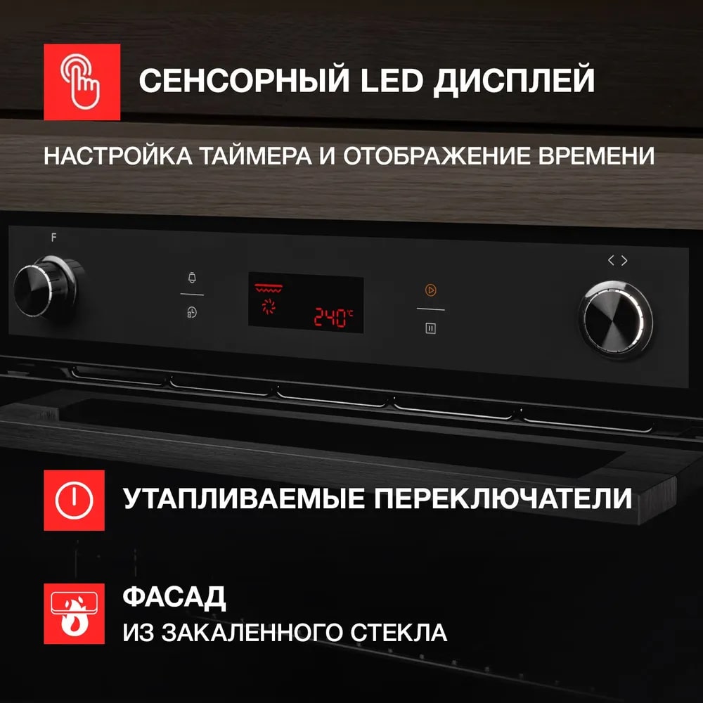Описаниешкаф духовой электрический независимый , 60 см, черное стекло