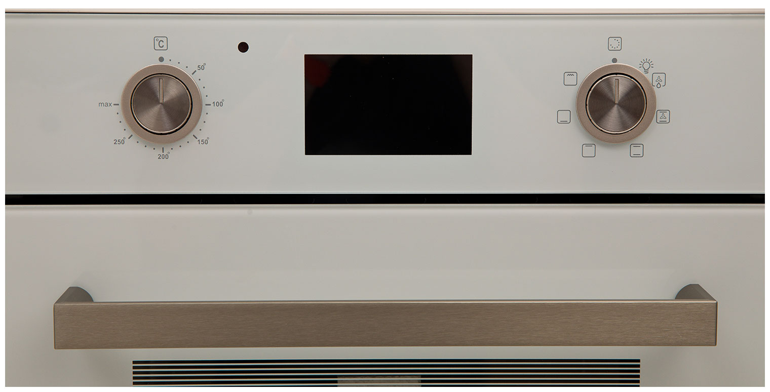 Описаниешкаф духовой электрический независимый, 45 см, белое стекло