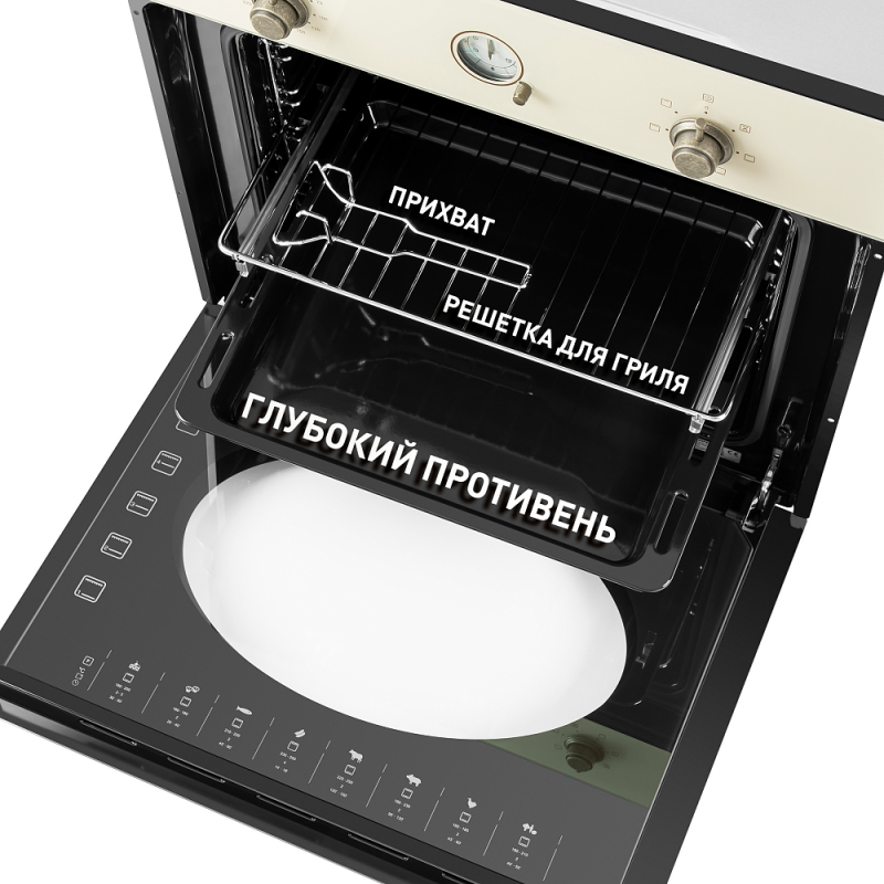 Описаниешкаф духовой электрический независимый, 60 см, слоновая кость, ручка бронза