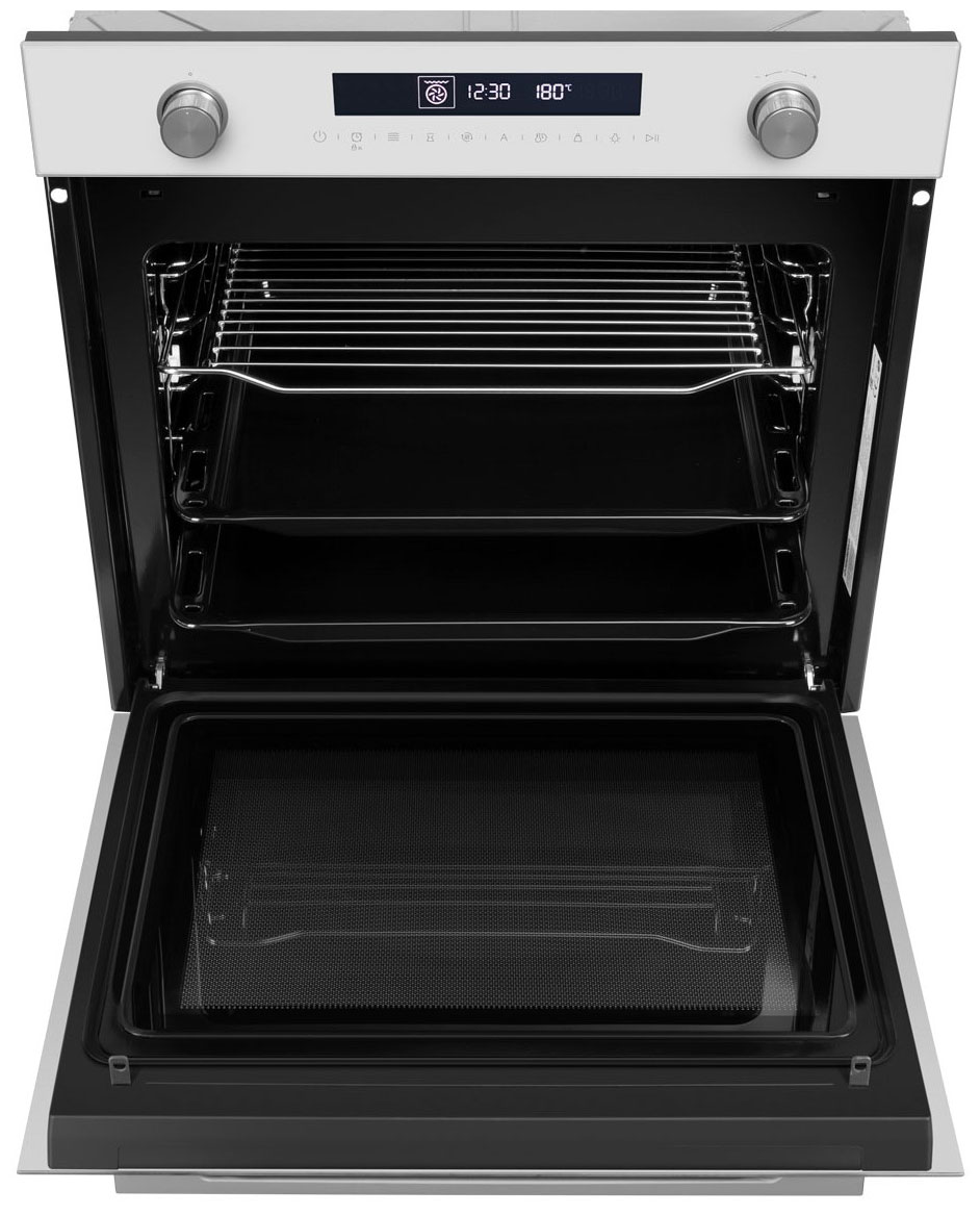 Описаниешкаф духовой электрический независимый с функцией СВЧ, 60 см, белое стекло