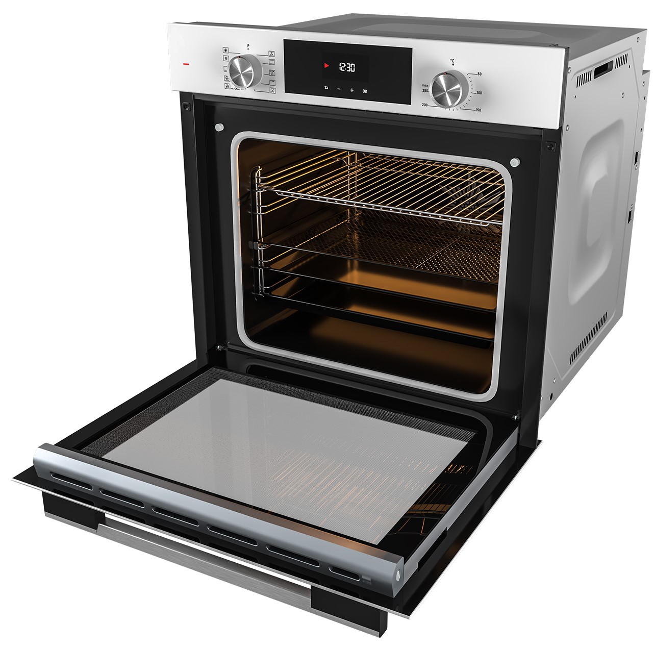 Описаниешкаф духовой электрический независимый, 60 см, белое стекло