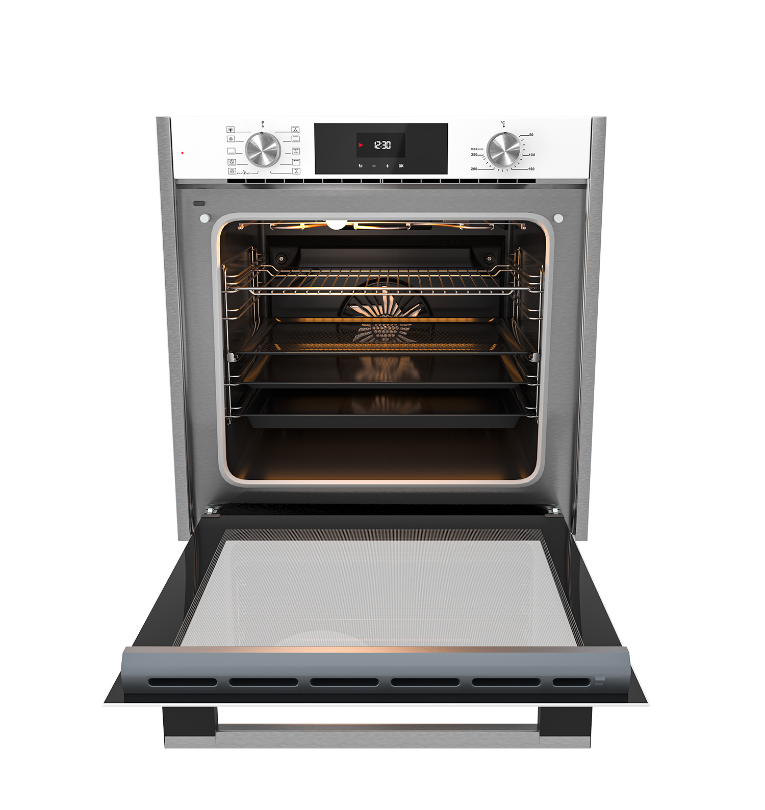 Описаниешкаф духовой электрический независимый, 60 см, белое стекло