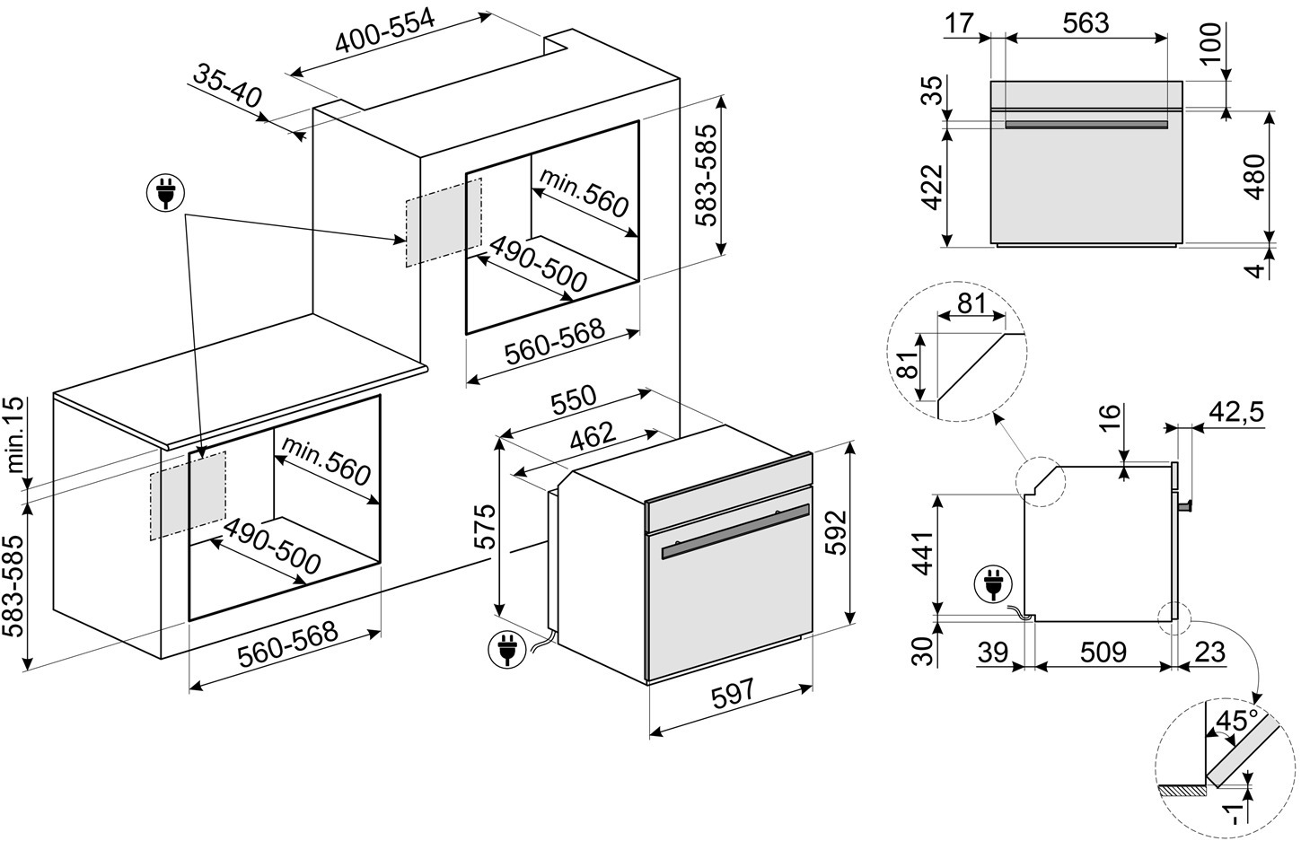 Описаниешкаф духовой электрический независимый, 60 см, черное стекло