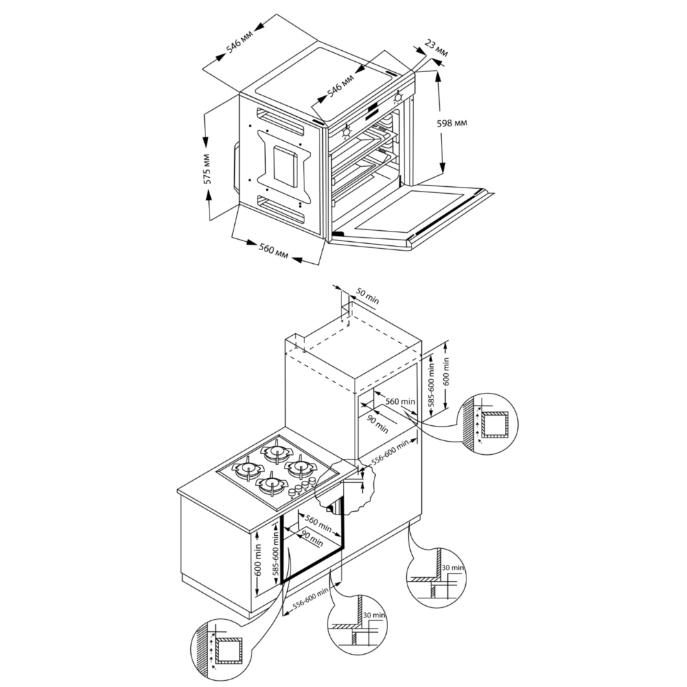 Описаниешкаф духовой электрический независимый, 60 см, белое стекло