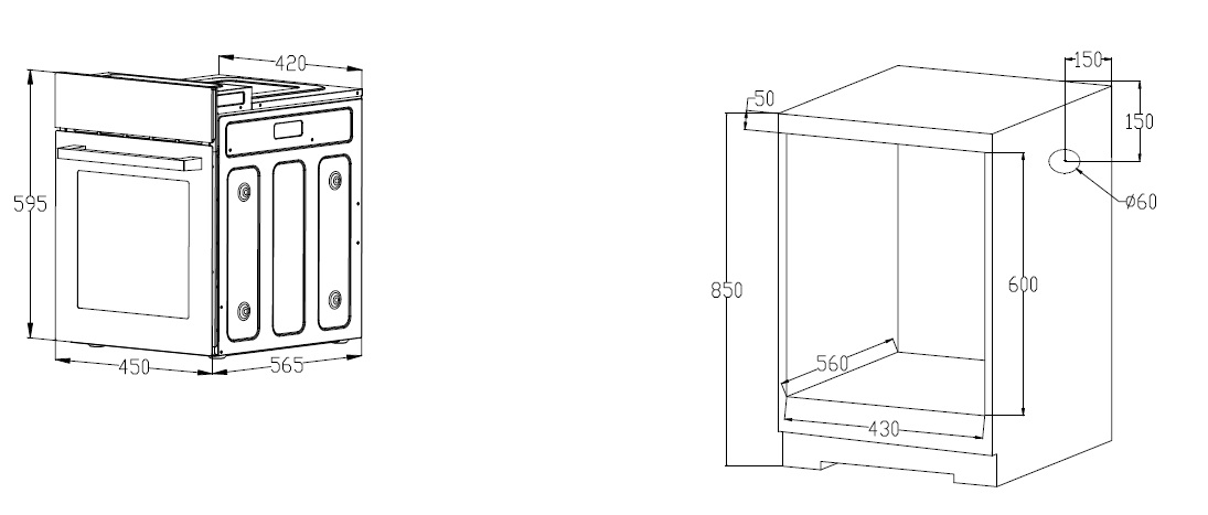 Описаниешкаф духовой электрический независимый, 45 см, черный