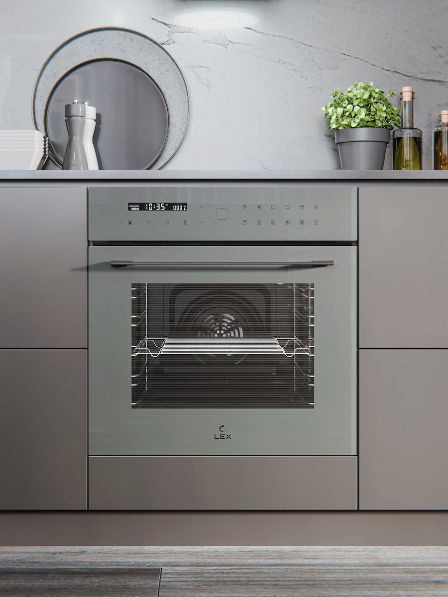 Описаниешкаф духовой электрический независимый, 60 см, серое стекло