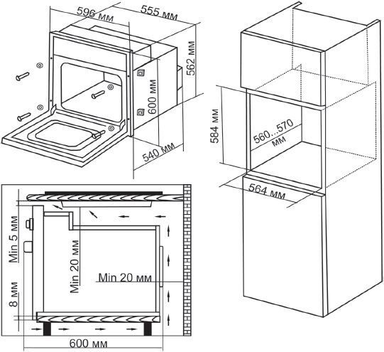 Описаниешкаф духовой электрический независимый, 60 см, белое стекло