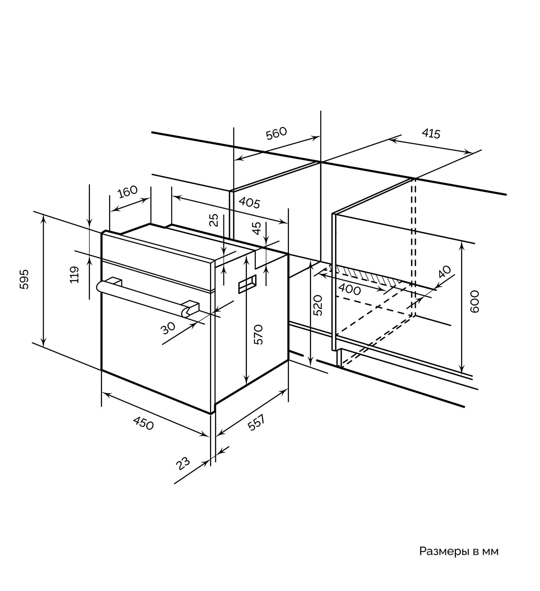 Размер (Высота) 59,5 см Размер (Глубина) 58 см Размер (Ширина) 45 см Цвет черный Класс энергопотребления класс A Ширина прибора 45 см Дисплей нет Конвекция нет Объём духовки 55 л Очистка духовки традиционная Переключатели поворотные Режимов работы 4 Количество стекол дверцы духовки два Тип духовки электрическая Установка независимая Телескопические направляющие нет Управление механическое Таймер нет Функции нет Приготовление с помощью пара нет Термозонд (Термощуп) нет Защита от детей нет Мощность подключения, Вт 1500 Плавное закрытие дверцы духовки нет Фронтальная поверхность закалённое стекло Фурнитура черная Гарантийный срок (месяцы) 12 Страна производитель Китай Ссылка на сайт производителя https://lex1.ru/shop/uncategorized/lex-edm-4545-bbl/ Размер в упаковке (Высота) 65 см Размер в упаковке (Ширина) 50 см Размер в упаковке (Глубина) 66 см Вес прибора 23,3 кг Размер (Ширина), см 45 Размер (Высота), см (Общие) 59,5 Размер (Глубина), см 58 - Отзывы