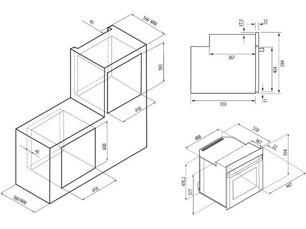 Описаниешкаф духовой электрический независимый, 45 см, белое стекло