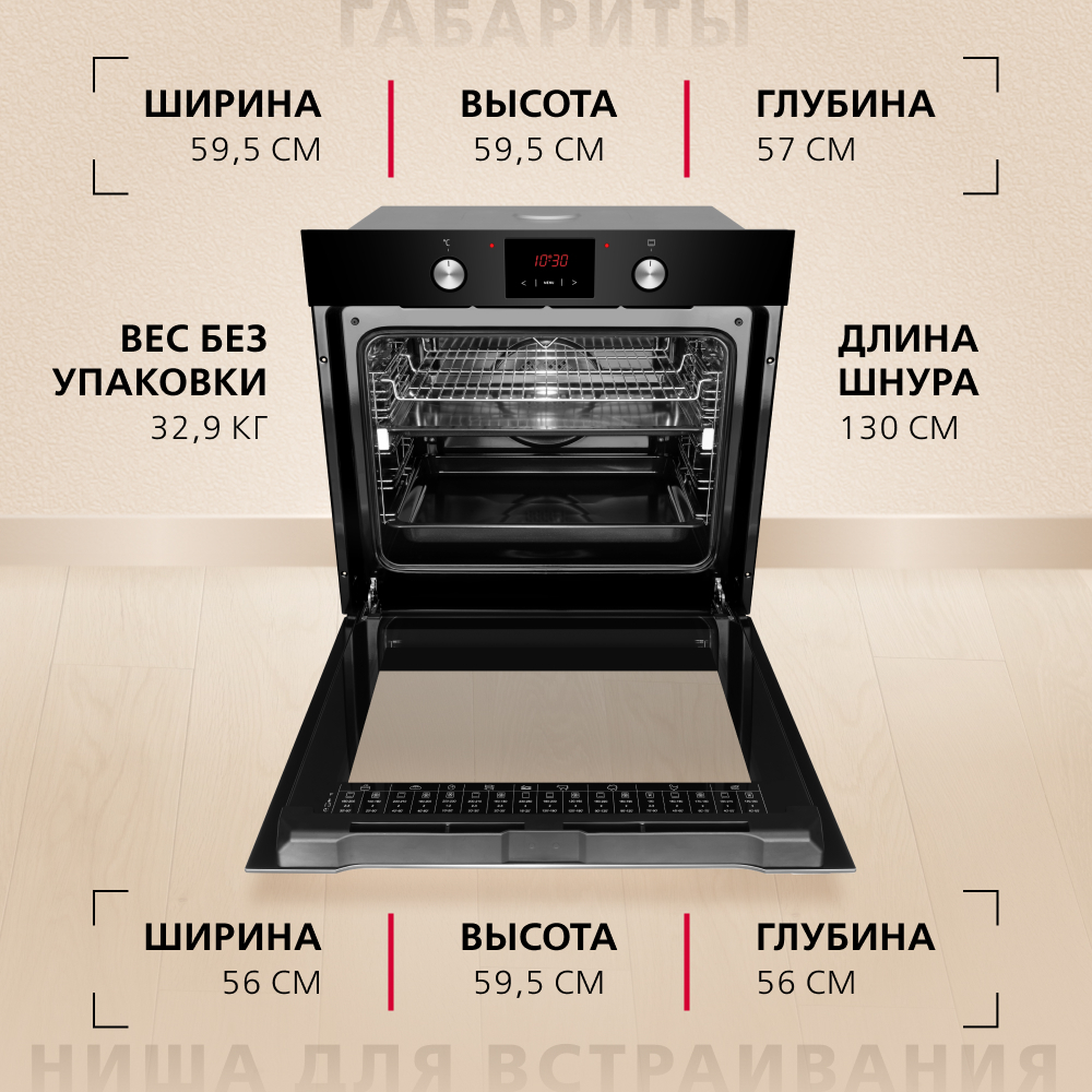 Описаниешкаф духовой электрический независимый, 60 см, черный
