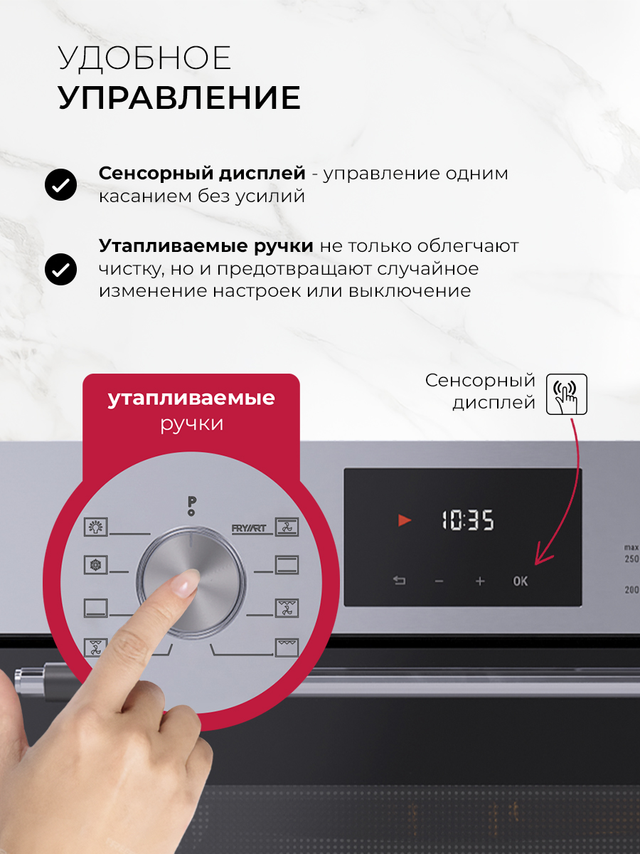 Размер (Высота) 59,5 см Размер (Глубина) 54,7 см Размер (Ширина) 59,5 см Цвет нержавеющая сталь Класс энергопотребления класс A Ширина прибора 60 см Дисплей есть, LED-дисплей Конвекция есть Объём духовки 73 л Очистка духовки паром Переключатели утапливаемые Режимов работы 7 Количество стекол дверцы духовки два Тип духовки электрическая Установка независимая Телескопические направляющие нет Управление сенсорное Таймер есть Функции нет Приготовление с помощью пара нет Термозонд (Термощуп) нет Защита от детей есть Мощность подключения, Вт 2509 Плавное закрытие дверцы духовки нет Фронтальная поверхность металл и стекло Фурнитура нержавеющая сталь Гарантийный срок (месяцы) 36,6 Страна производитель Турция Ссылка на сайт производителя https://lex1.ru/shop/duxovye-shkafy/4-funktsii/lex-edp-680-ix-max Размер в упаковке (Высота) 67 см Размер в упаковке (Ширина) 65 см Размер в упаковке (Глубина) 66 см Вес прибора 28,5 кг Размер (Ширина), см 59,5 Размер (Высота), см (Общие) 59,5 Размер (Глубина), см 54,7 - Отзывы