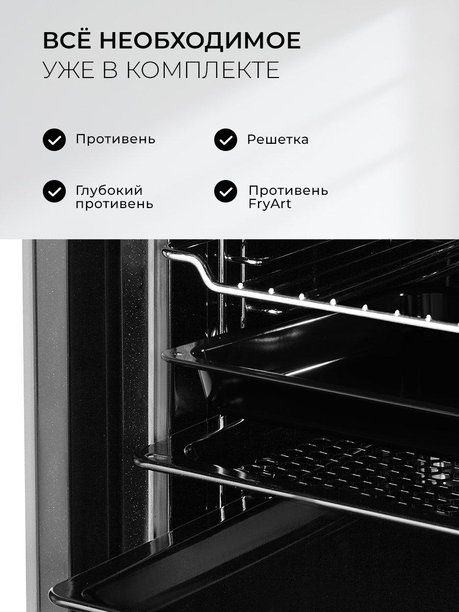 Описаниешкаф духовой электрический независимый, 60 см, черное стекло