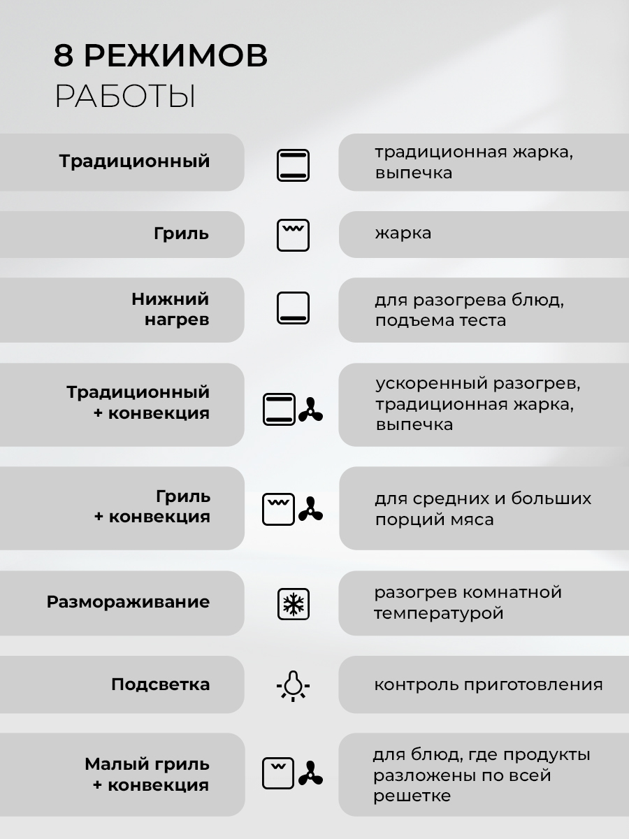 Описаниешкаф духовой электрический независимый, 60 см, белое стекло