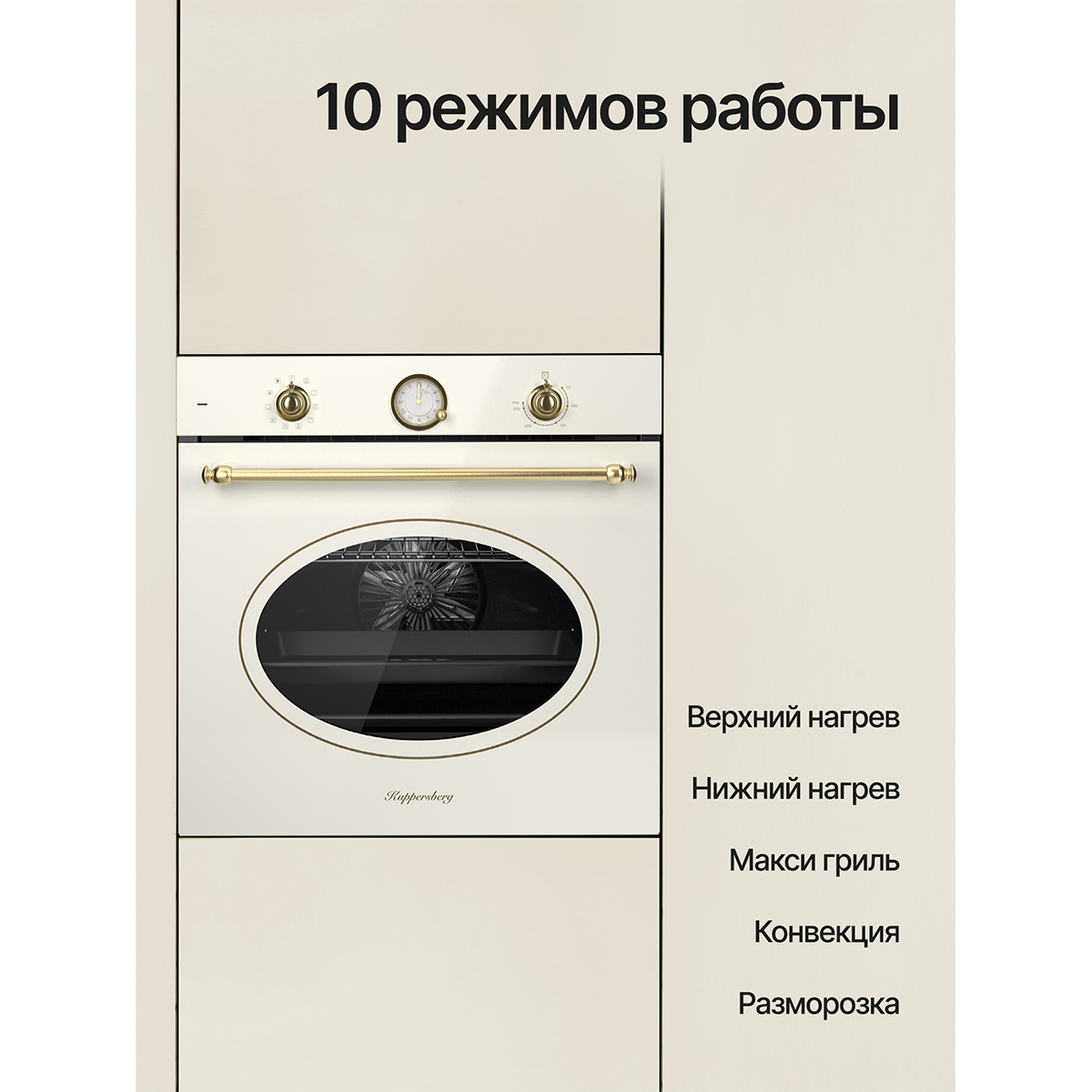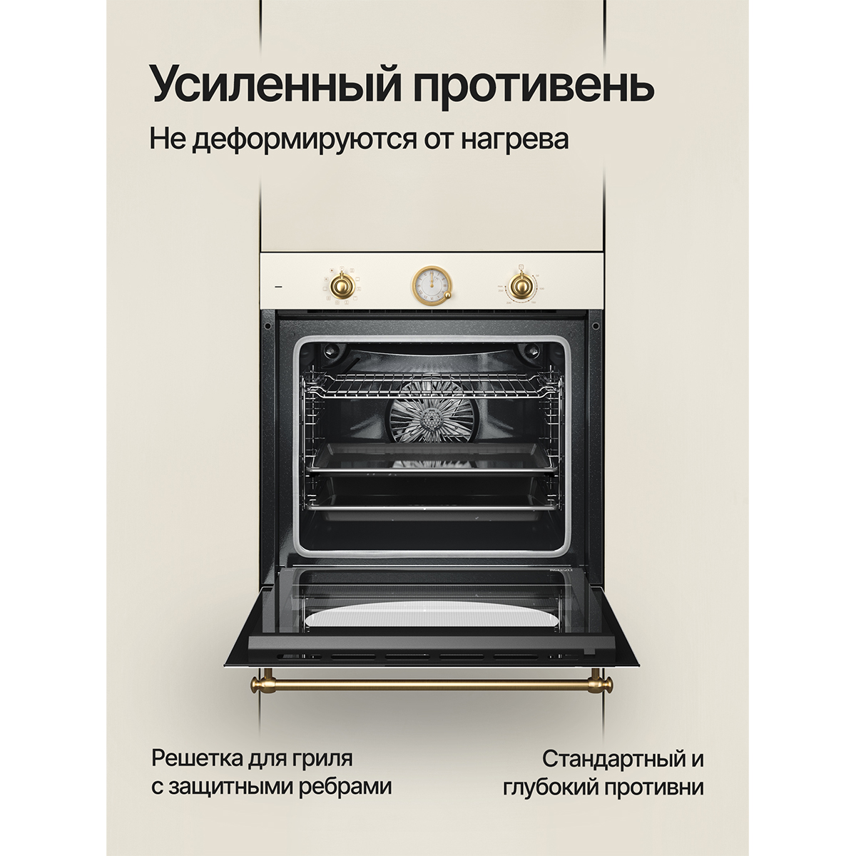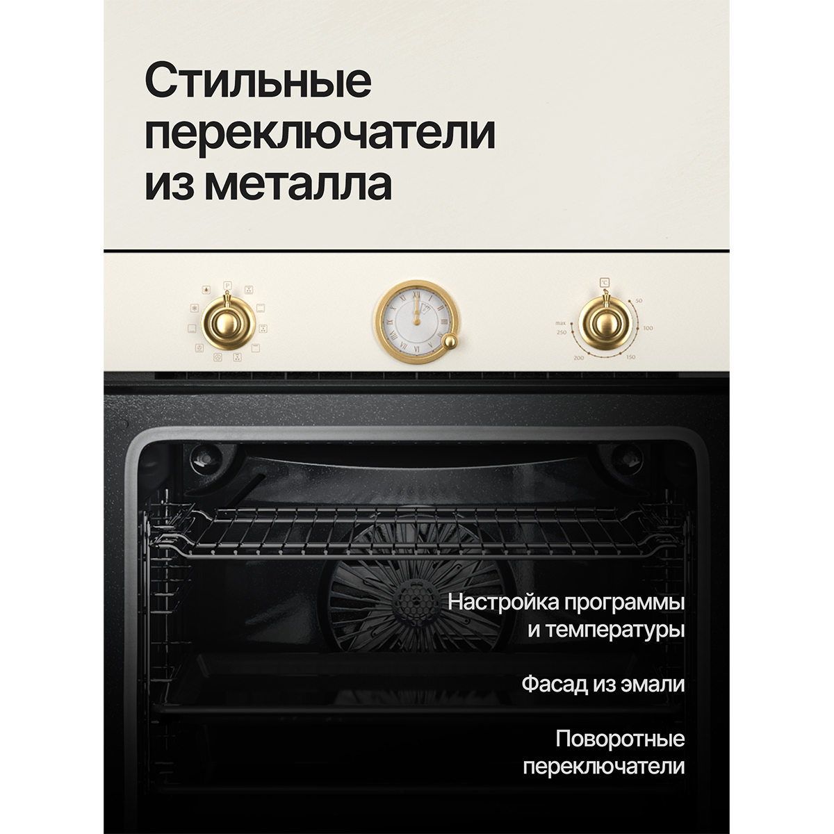 Описаниешкаф духовой электрический независимый, 60 см, бежевый / фурнитура бронза