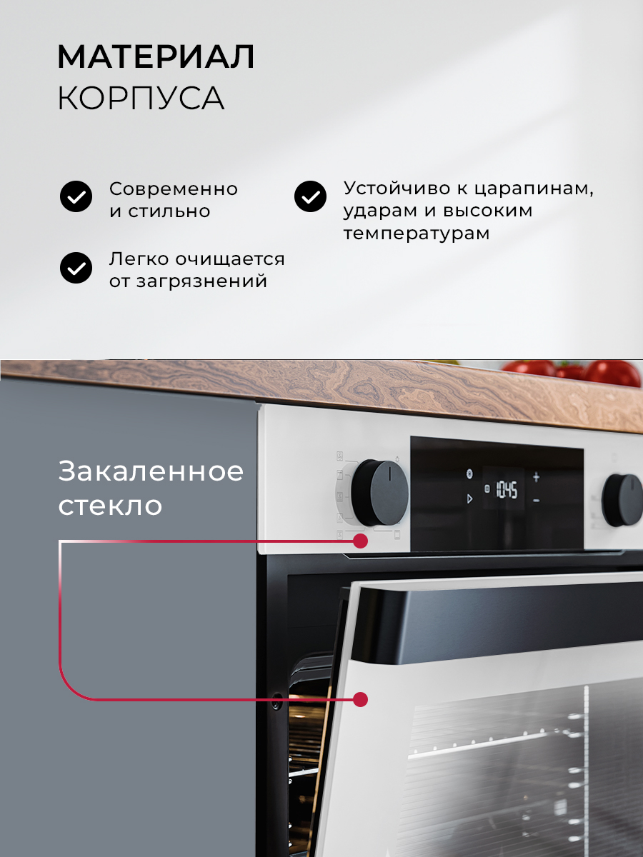 Описаниешкаф духовой электрический независимый, 60 см, белое стекло