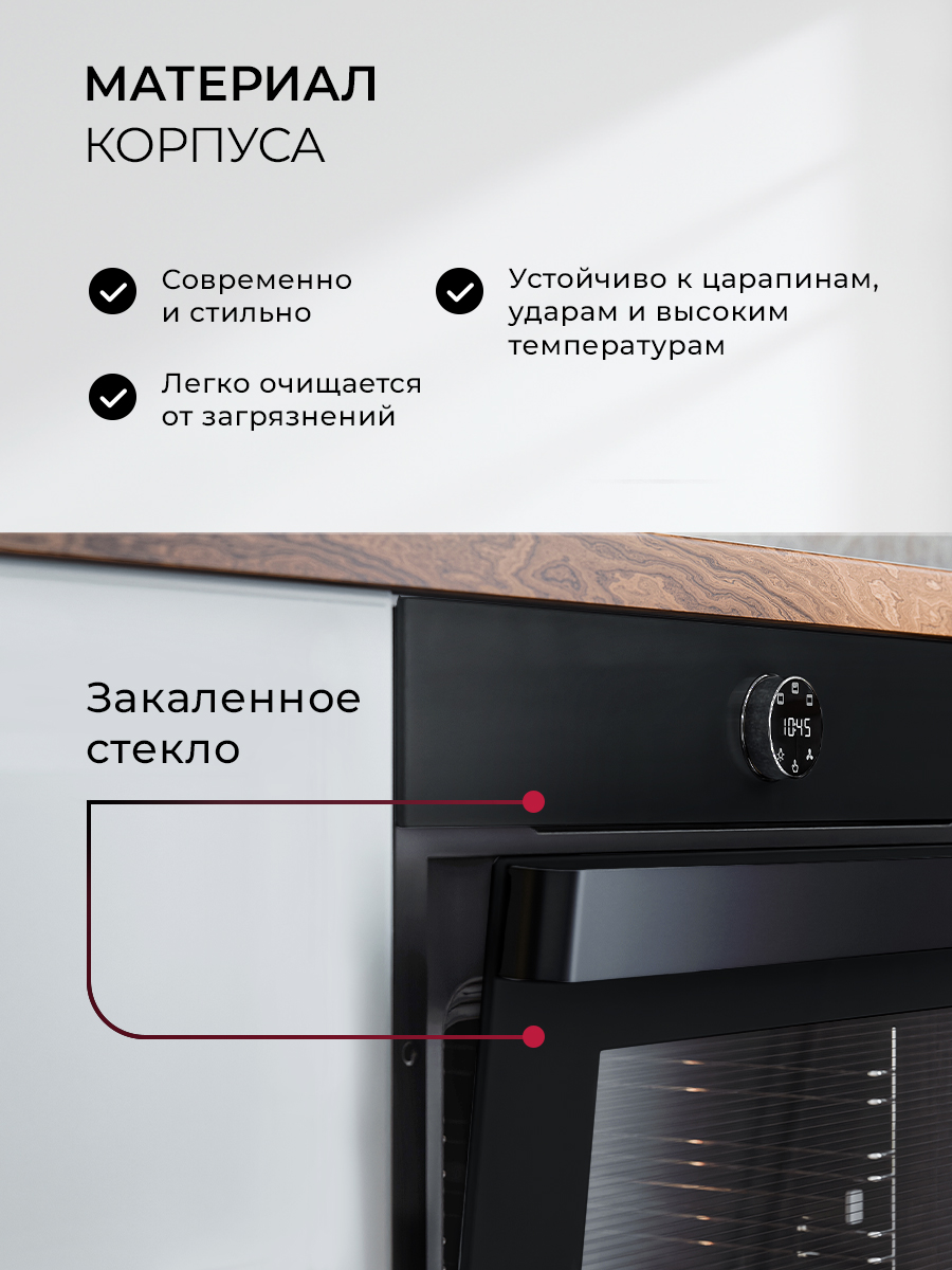 Описаниешкаф духовой электрический независимый, 60 см, черное стекло