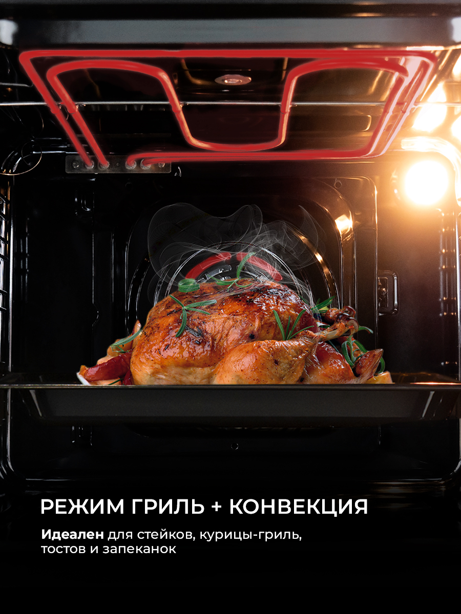 Описаниешкаф духовой электрический независимый, 60 см, черное стекло