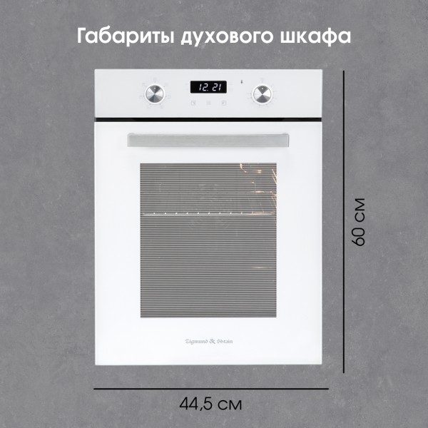 Размер (Высота) 60 см Размер (Глубина) 60 см Размер (Ширина) 44,5 см Цвет белый Класс энергопотребления класс A Ширина прибора 45 см Дисплей есть Конвекция есть Объём духовки 51 л Очистка духовки EasyClean Переключатели утапливаемые+сенсорные Режимов работы 6 Количество стекол дверцы духовки три Тип духовки электрическая Установка независимая Телескопические направляющие есть Управление сенсорное + утапливаемые ручки Функции нет Мощность подключения, Вт 2200 Фронтальная поверхность закалённое стекло Фурнитура нержавеющая сталь Гарантийный срок (месяцы) 36 Страна производитель Китай Ссылка на сайт производителя https://www.zigmundshtain.ru/appliances/duhovki-elektricheskie/elektricheskij-duhovoj-shkaf-zigmund-shtain-e-174-w?ysclid=m6koq7x8kn943343697 Вес прибора 24,8 кг Размер (Ширина), см 44,5 Размер (Высота), см (Общие) 60 Размер (Глубина), см 60 - Отзывы