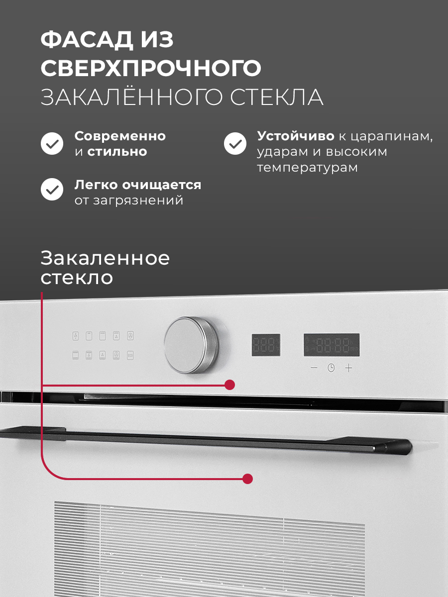 Описаниешкаф духовой электрический независимый, 60 см, белое стекло