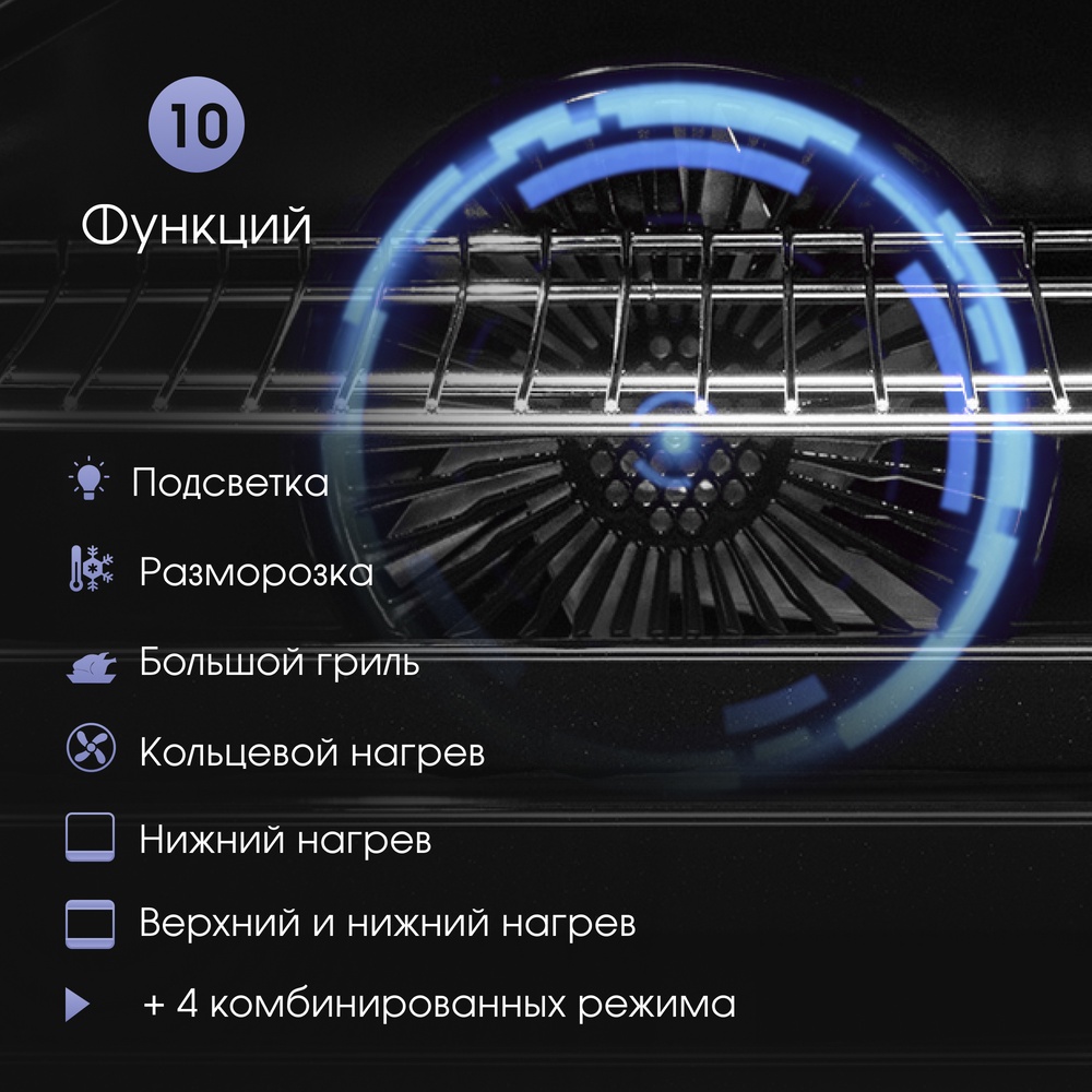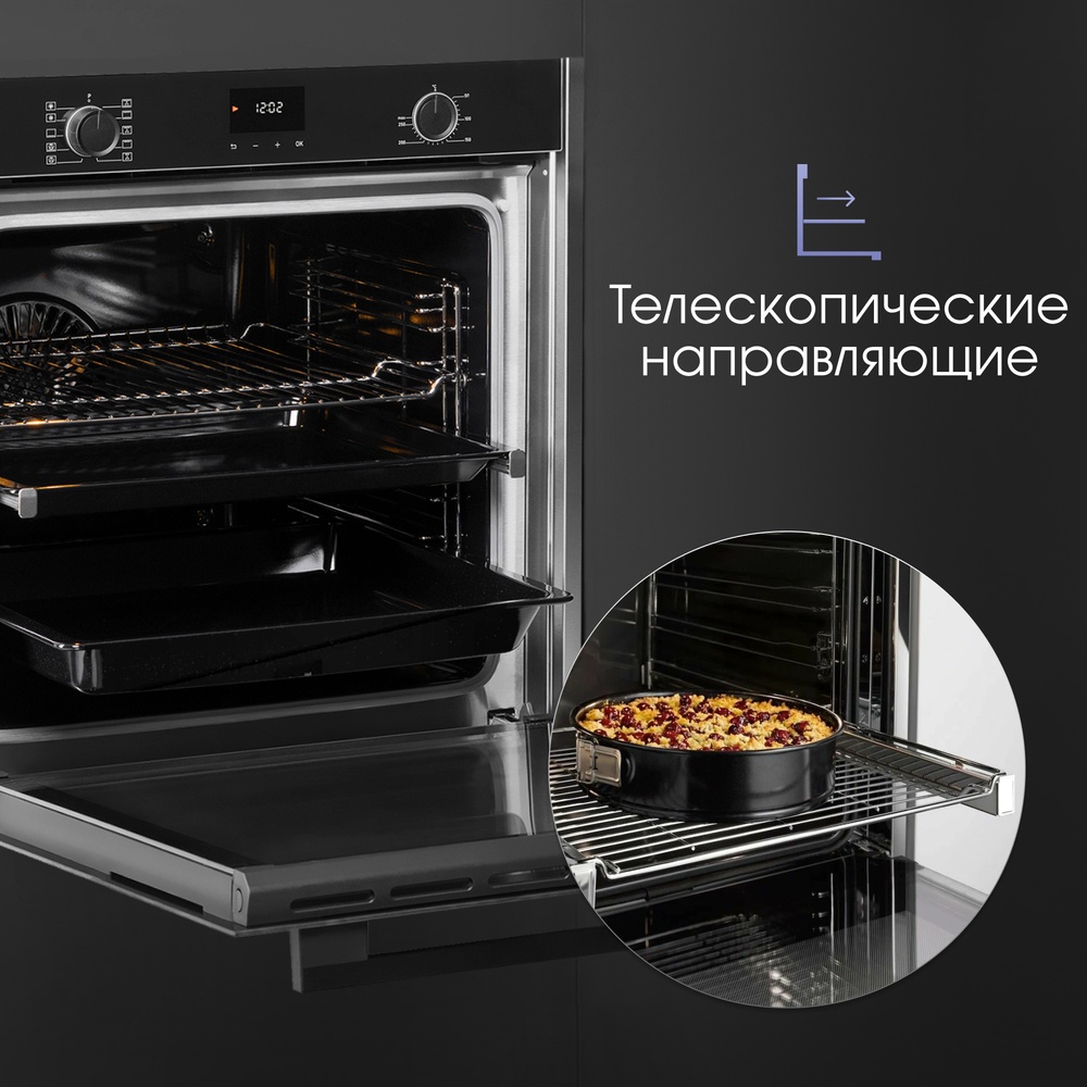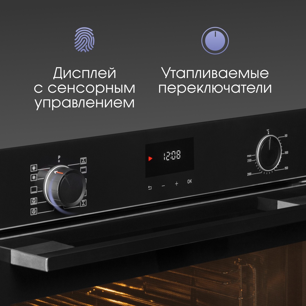 Описаниешкаф духовой электрический, 60 см, черное стекло