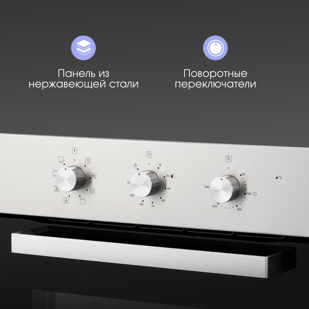 Описаниешкаф духовой электрический, 60 см, нержавеющая сталь