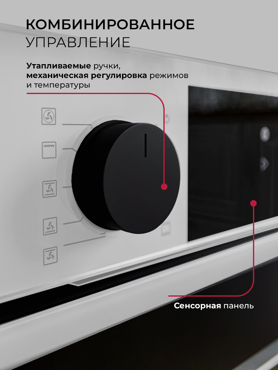 Описаниешкаф духовой электрический, 60 см, белое стекло