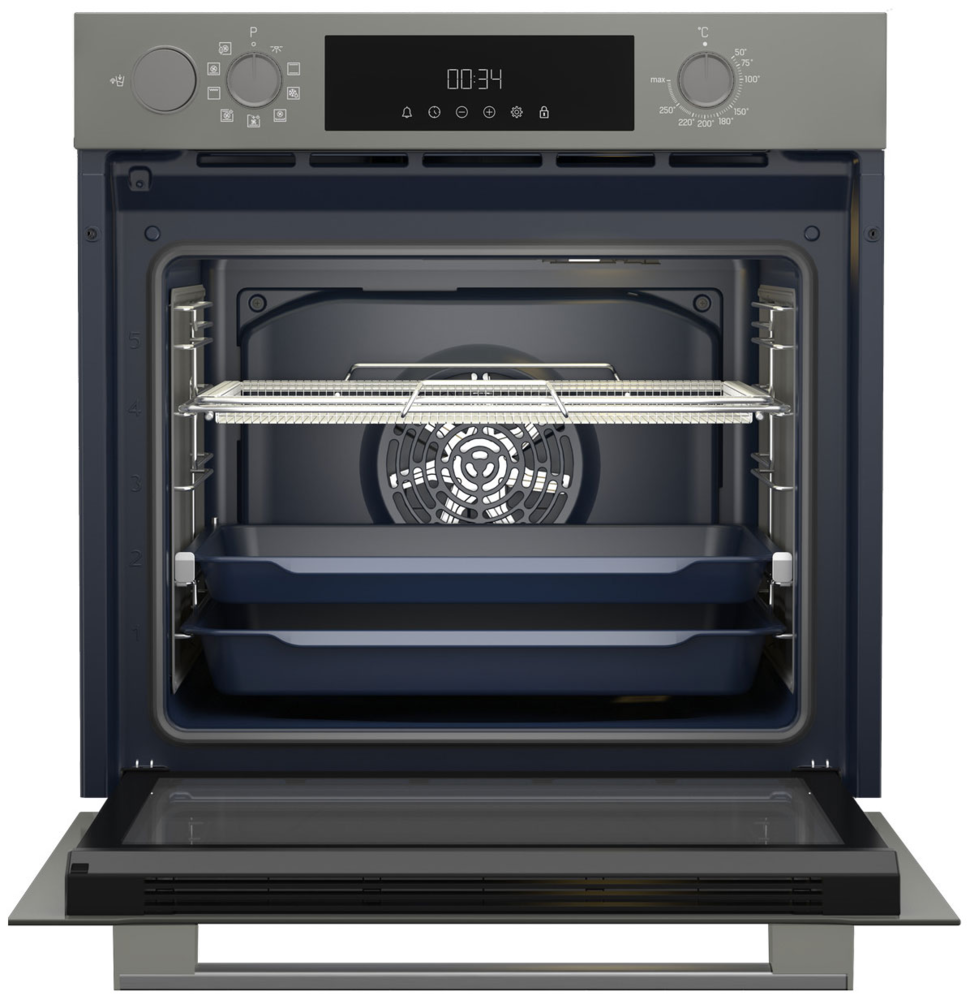 Размер (Высота) 59,5 см Размер (Глубина) 56,7 см Размер (Ширина) 59,4 см Цвет серый Класс энергопотребления класс A+ Ширина прибора 60 см Дисплей есть Конвекция есть Объём духовки 72 л Очистка духовки паром+пиролитическая Переключатели утапливаемые+сенсорные Режимов работы 9 Количество стекол дверцы духовки три Тип духовки электрическая Установка независимая Телескопические направляющие есть Управление сенсорное + механическое Таймер есть Функции нет Приготовление с помощью пара есть Термозонд (Термощуп) нет Защита от детей есть Вес прибора 34,79 кг Размер (Ширина), см 59,4 Размер (Высота), см (Общие) 59,5 Размер (Глубина), см 56,7 - Отзывы