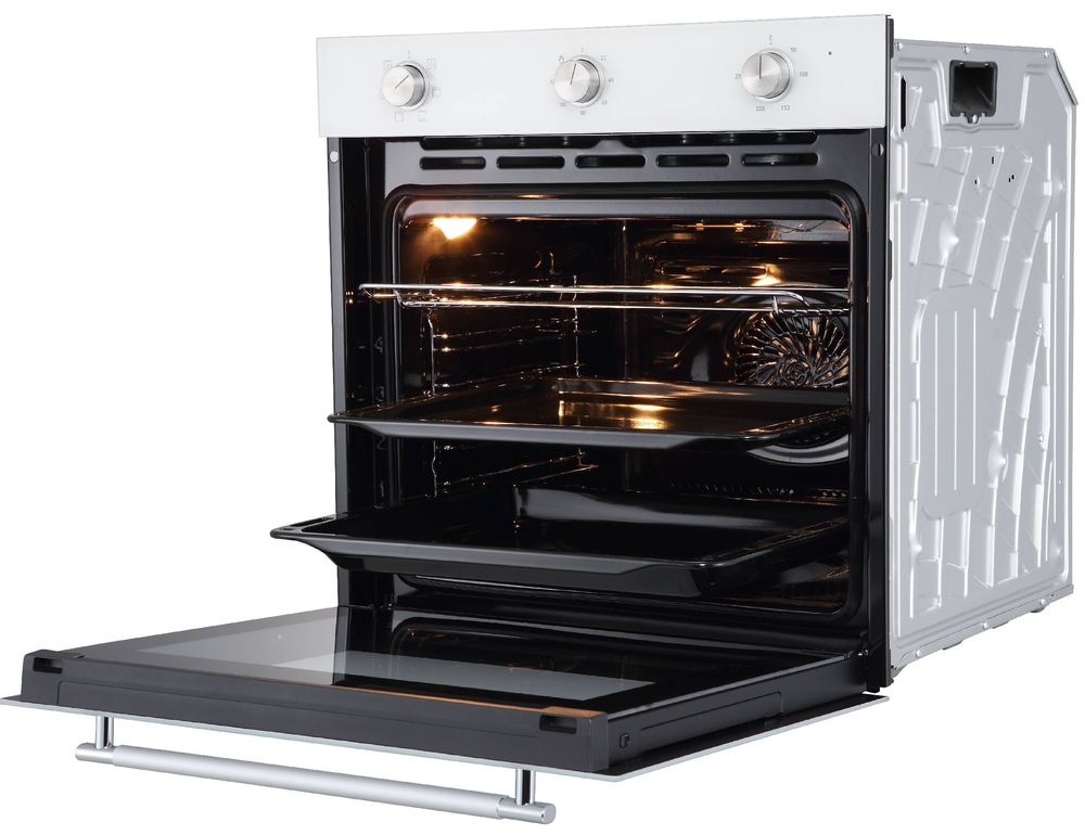 Описаниешкаф духовой электрический, 60 см, белое стекло + серебристо-хромированная ручка