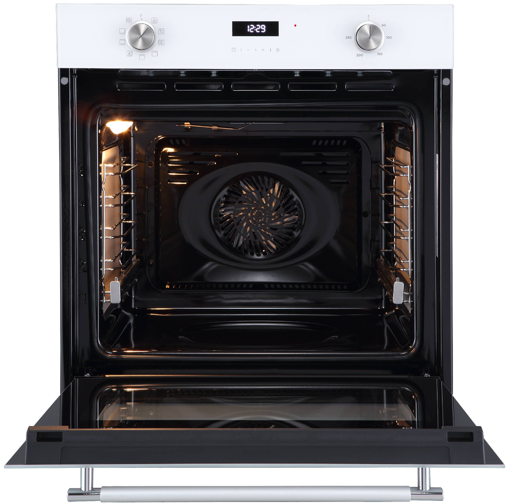 Описаниешкаф духовой электрический, 60 см, белое стекло + серебристо-хромированная ручка