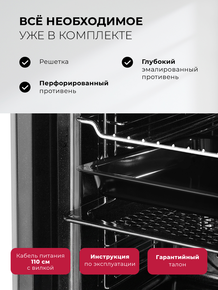 Описаниешкаф духовой электрический, 60 см, белое стекло